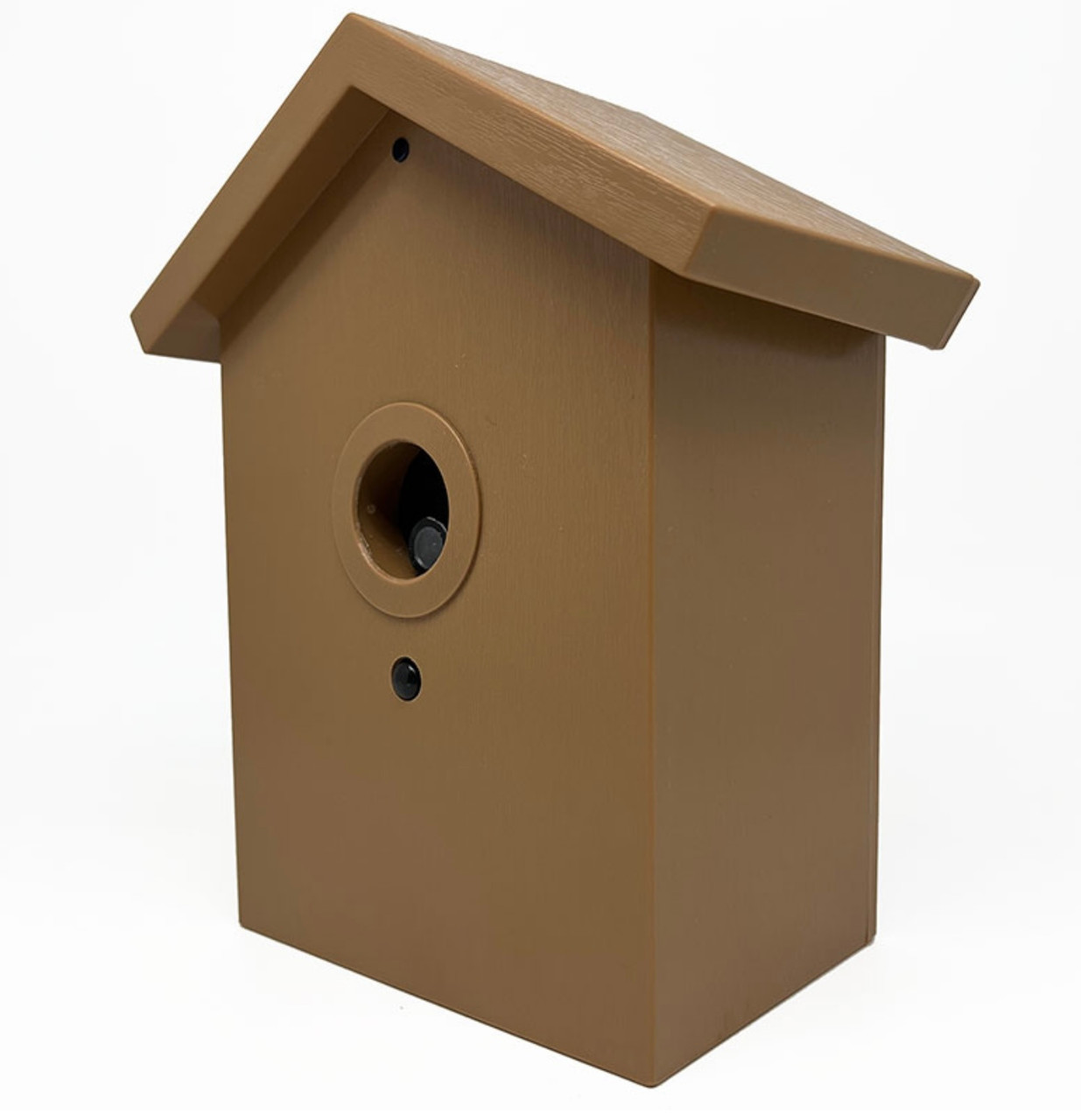 This common plastic birdhouse really houses a wi-fi enabled hidden camera that is powered by a long life battery and solar panel. Inside the modular 3D printed housing is a 1080P camera and memory card. Set-up takes minutes and then you're ready to catch some bird brained behavior in your yard or parking lot.
